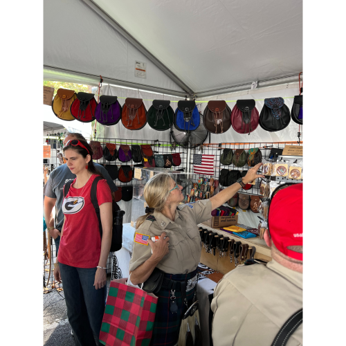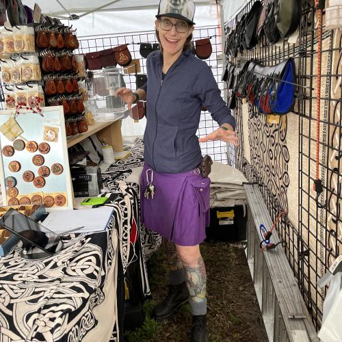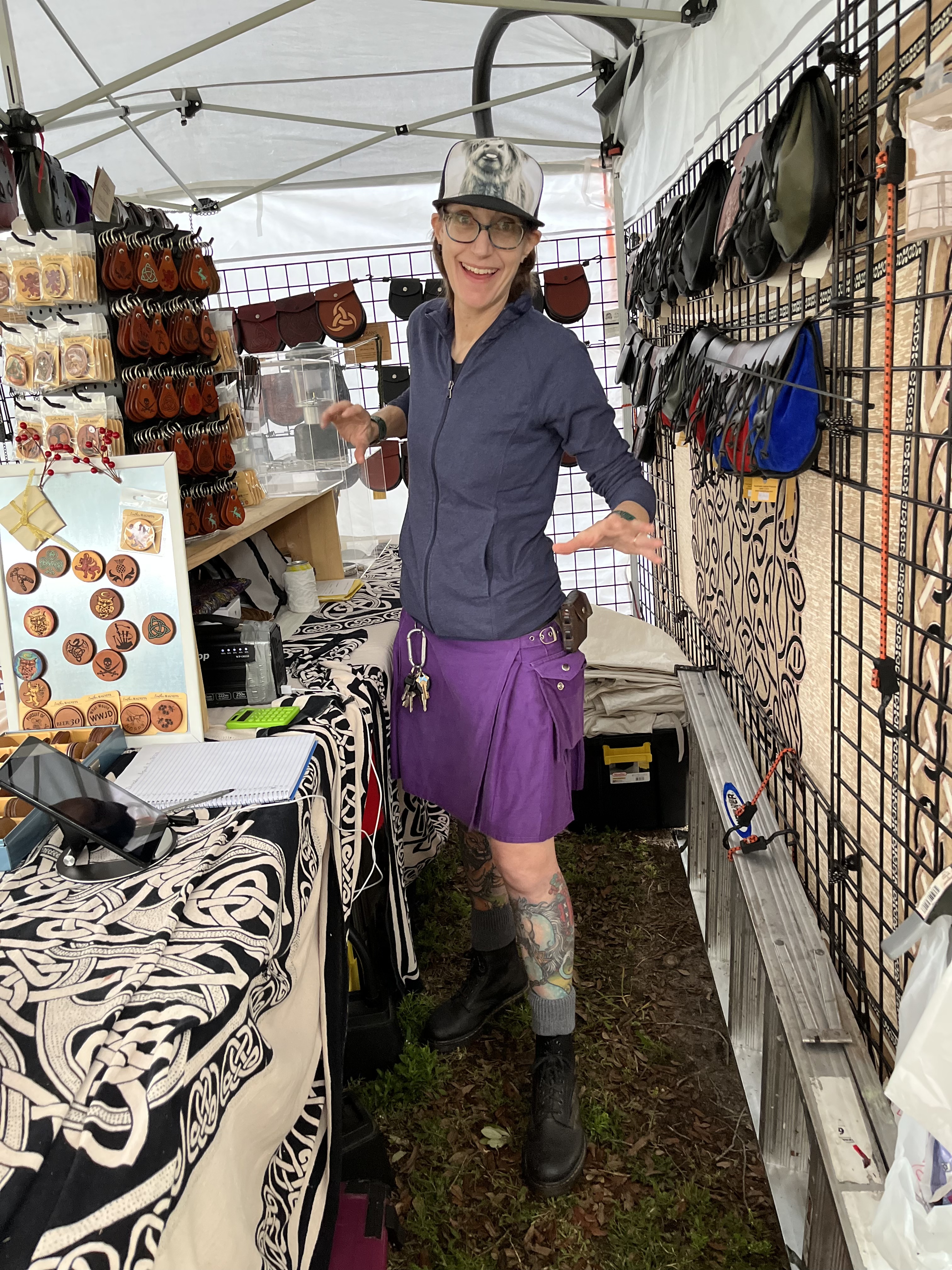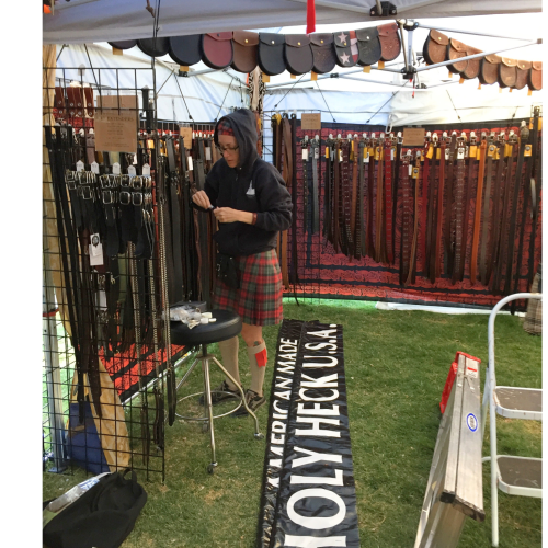 We hand make leather kilt accessories, festival gear & Celtic themed gifts. All of our leather products are designed by us and made in house, in our shop in Dothan, Alabama. We do not outsource our production.